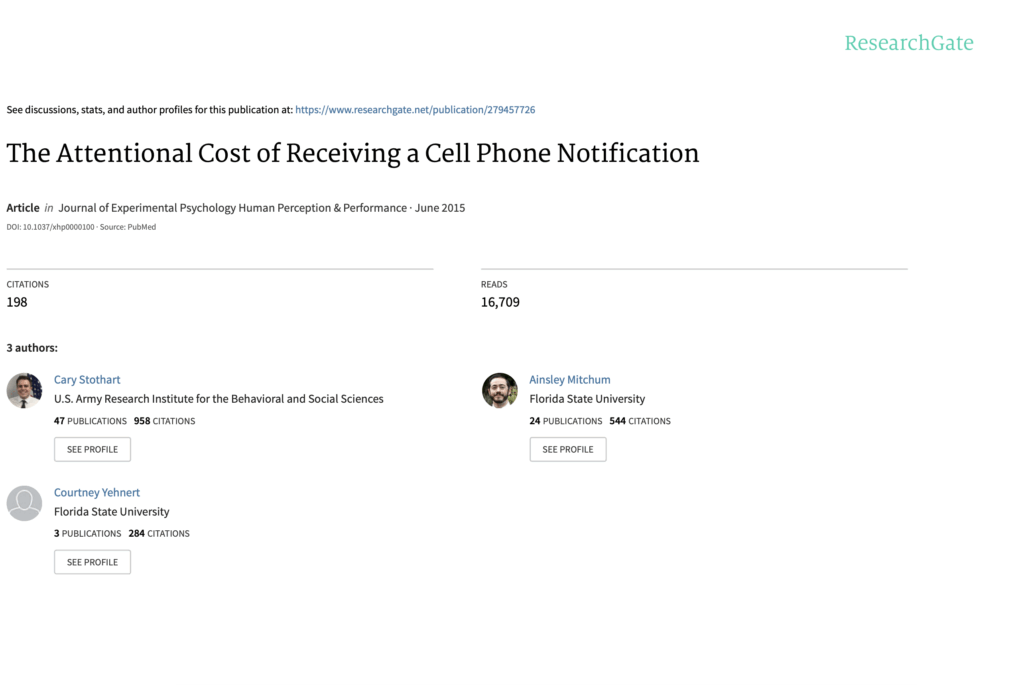 Stothart, Mitchum & Yehnert (2015) – “The Attentional Cost of Receiving a Cell Phone Notification”