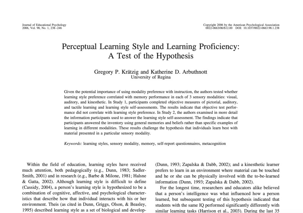 Krätzig & Arbuthnott (2006) – “Perceptual Learning Style and Learning Proficiency”